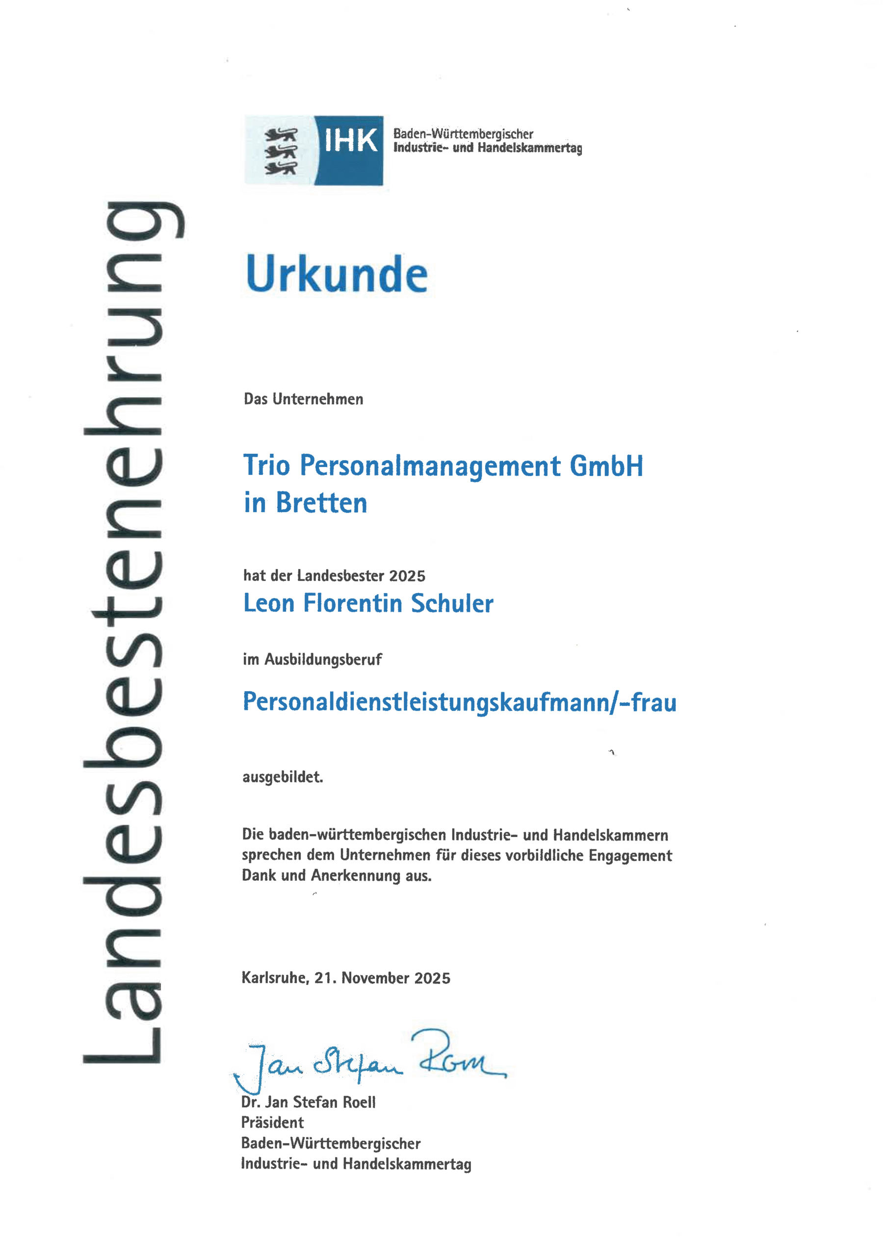 Gute und langfristige Arbeitsplätze für zuverlässige und motivierte Mitarbeiter (m/w/d) – zusammenzubringen was zusammengehört sind uns Motivation und Ziel. Unsere jahrelange Erfahrung in diesem Bereich bündeln wir seit August 2019 in der ,,Trio Personalmanagement GmbH”: Bünyamin Ayaz, Thomas Herrmann und Vladimir Uzelac.